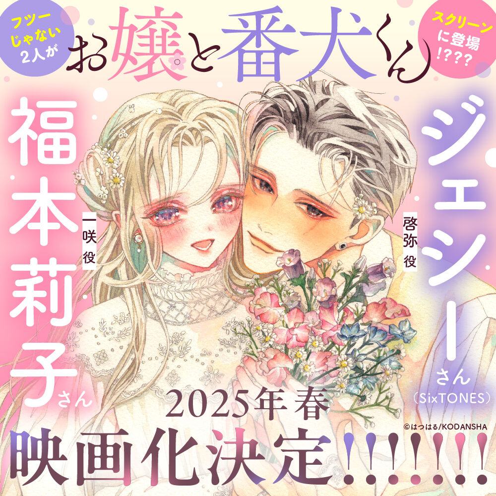 | 『お嬢と番犬くん』(おじょうとばんけんくん)は、はつはるによる日本の漫画作品。『別冊フレンド』(講談社)にて、2019年1月号から連載中。 ヤクザの組長の孫と、その世話係である若頭の恋愛模様を描くラブコメディ。 2024年5月時点で累計発行部数は310万部を突破している。 2025年3月に実写映画版が公開予定。… 24キロバイト (2,304 語) - 2024年9月25日 (水) 08:46 |